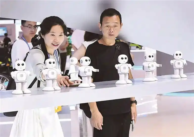 第七届中国西部国际投资贸易洽谈会以“新西部、新制造、新服务”为主题,聚焦推动高质量发展。图为西洽会展览现场,AI陪伴机器人吸引观众目光。 图片来源:视觉中国