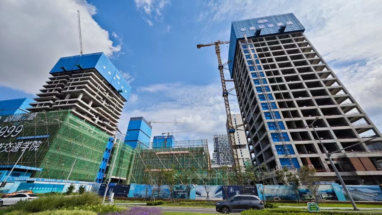 本次封顶的三期工程于2022年7月开工,净用地面积约1.97万平方米,总建筑面积约12.12万平方米,地下建筑面积约2.15万平方米,包括2个综合体,主要功能为图书馆、报告厅、综合展览馆、信息中心、科研与教师办公用房、科研平台与教师公寓等。在三期工程主体封顶前,前两期工程分别于2022年11月和2023年5月相继封顶。