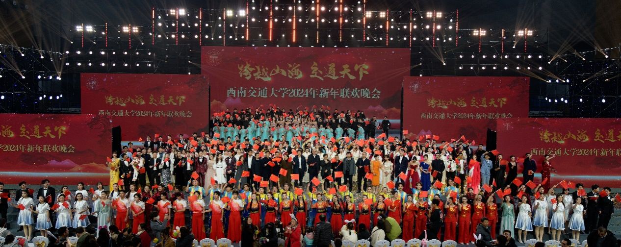 2024年新年联欢晚会在犀浦校区飞碟体育馆举办。晚会以“跨越山海·交通天下”为主题,校党委书记余敏明,校长、校党委副书记闫学东以及全体在家校领导,中铁八局建筑公司总工程师、日本色情片