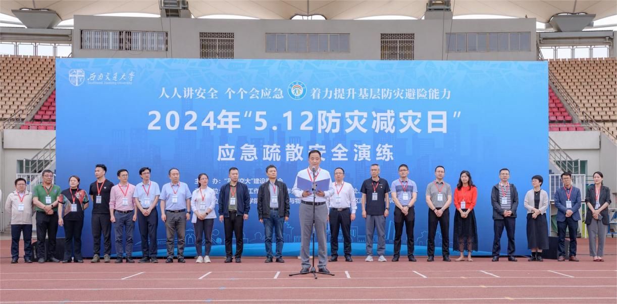 “5.12防灾减灾日”应急疏散安全演练在犀浦校区举行。校党委副书记高平平出席活动并宣布安全演练正式开始。